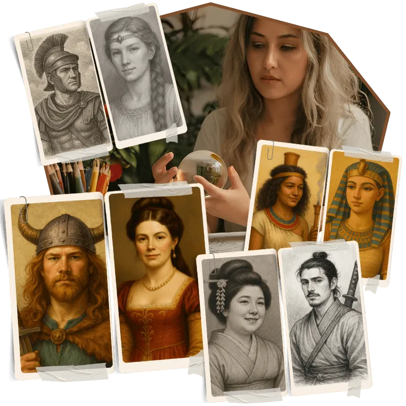 You'll receive a detailed past life story, including insights into your personality, spiritual lessons, emotional energy, and even the era and region you lived in. Along with this, you’ll receive a custom black-and-white portrait that reflects your past life appearance.